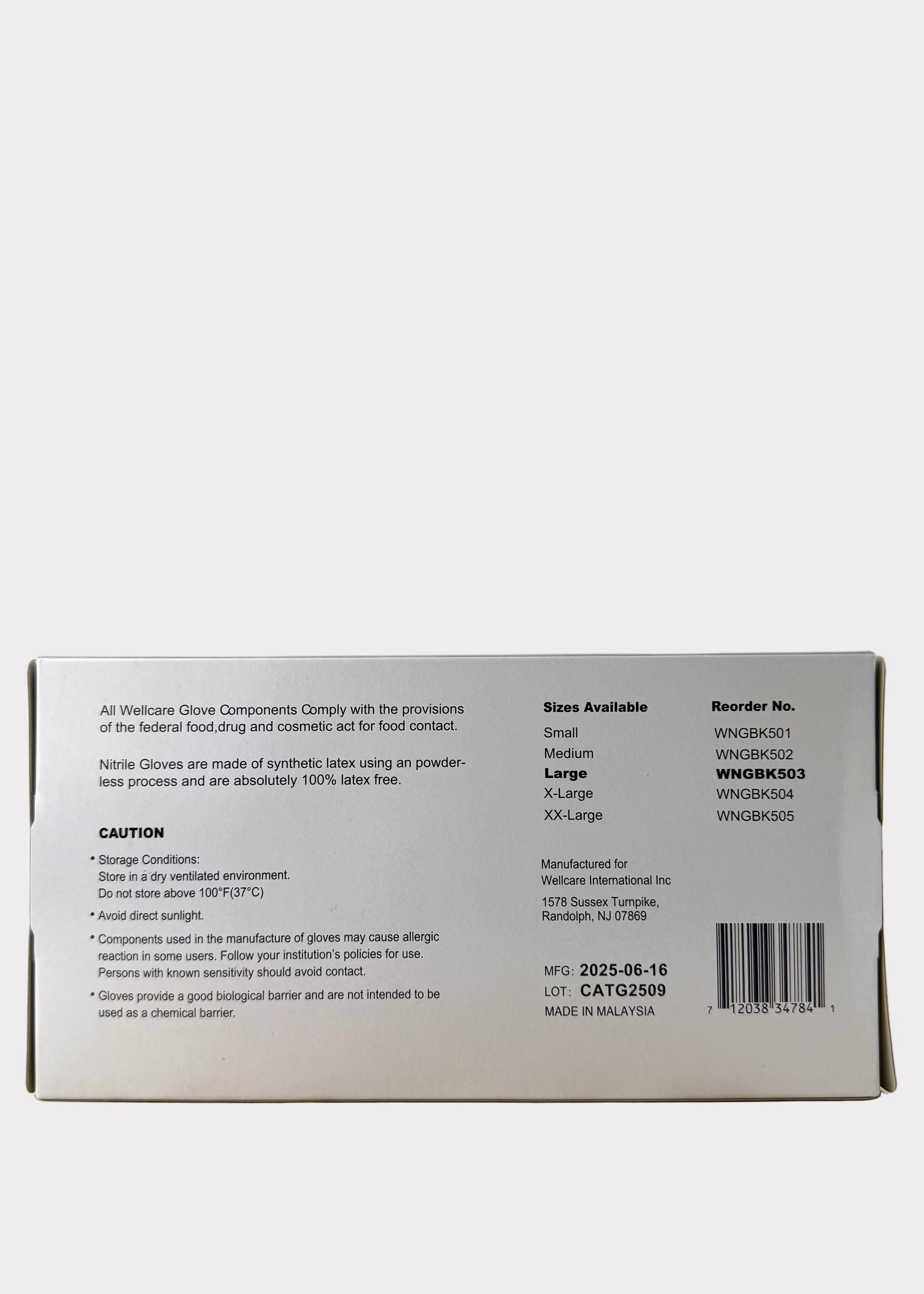 WellCare Black Nitrile Gloves provide durable, comfortable protection for everyday tasks. Designed with a synthetic latex-free formula, these gloves eliminate the risk of allergic reactions while maintaining flexibility and strength. The powder-free texture ensures a clean, professional grip, ideal for salon, food prep, cleaning, or general use.