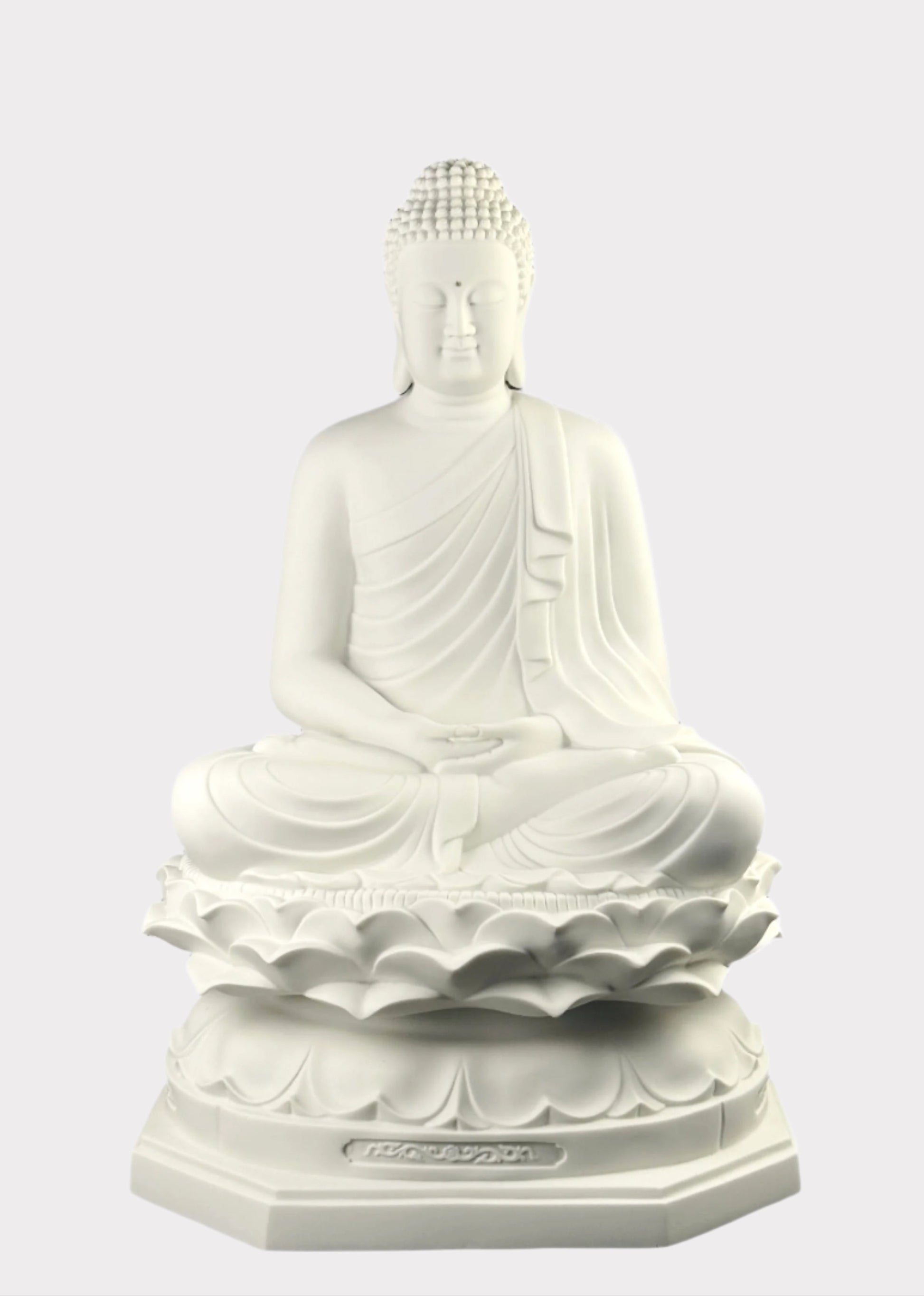 Shakyamuni Buddha White Resin Statue – Tranquil Elegance for Sacred Spaces